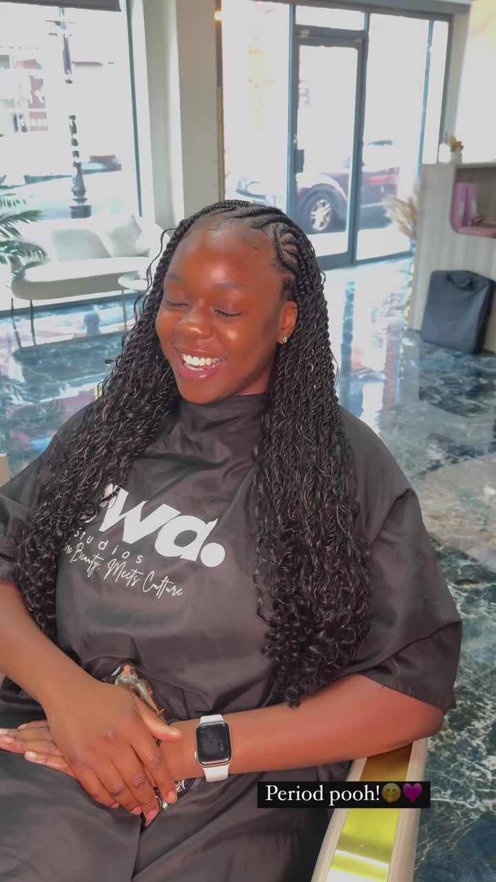 Fulani Braids are a stylish and versatile protective hairstyle, featuring intricate braided patterns often accented with beads or accessories. Designed for a polished, long-lasting look, this style is gentle on the scalp while showcasing creativity and cultural flair.